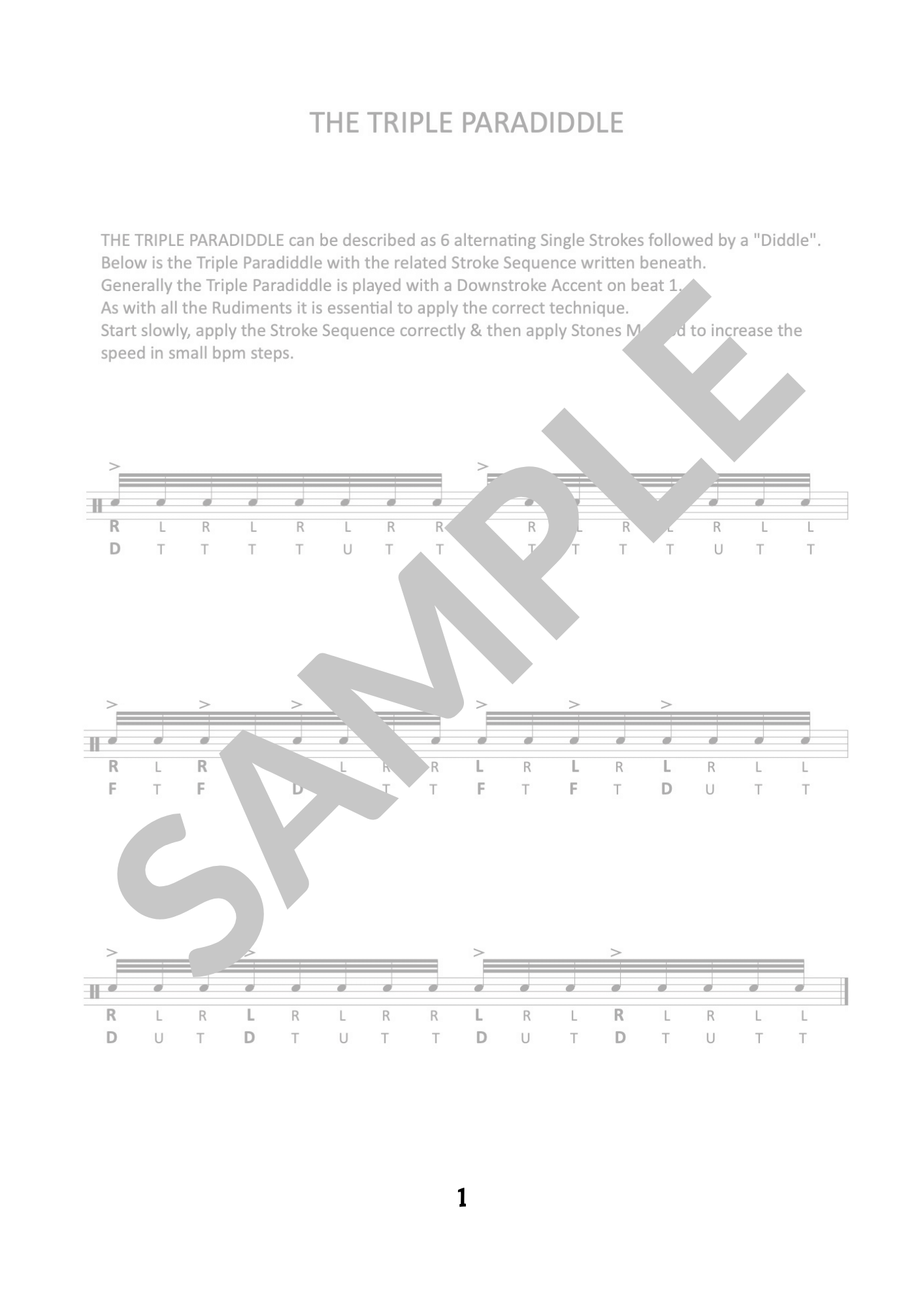 This 2 page tutorial contains a breakdown & explanation of the Triple Paradiddle with Stroke Sequences, Accent placements, Grooves & Fills.